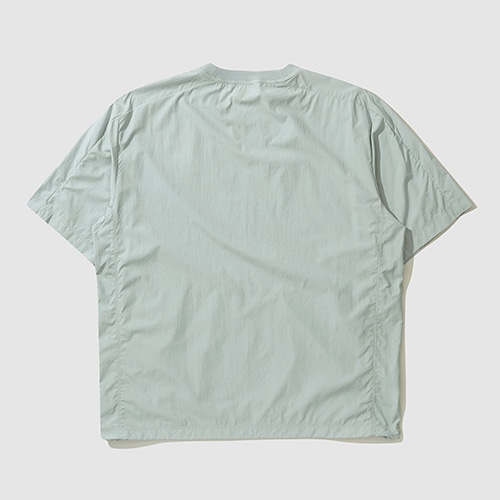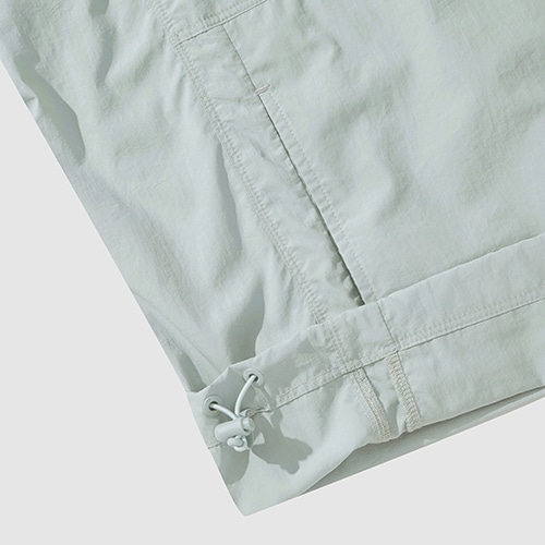 ナチュラルなカラー、柔らかいタッチの素材で、カンガルーポケットがアクセントの半袖ピステ。裾のスピンドルでサイズ調節が可能。