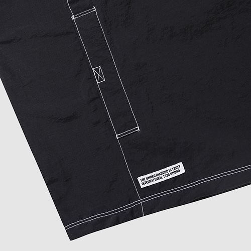 ワッシャー加工でヴィンテージ風な素材感が特徴の半袖アノラックジャケット。裾のスピンドルでサイズ調節が可能。