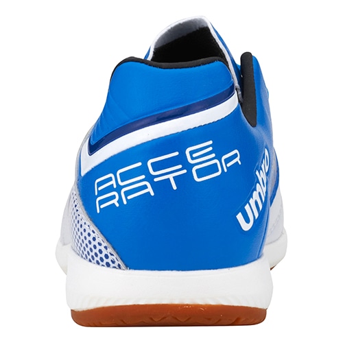 - SUPPORT YOUR INSIDEをコンセプトに企画したジャパン企画のumbro『ACCERATOR(アクセレイター)』シリーズのジュニアインドアトレーニング用モデル。ジャパン企画のワイドラスト。アッパー材全体に耐久性のある合成皮革を採用。インドアコート向けスタンダードソール。ノンマーキング仕様。クッション性と反発性を考慮したインジェクションEVAをミッドソールに採用。地面からの突き上げを感じやすい踵部分に衝撃緩衝材『U/メモリーF』を搭載。取り外し可能なEVAカップインソール。