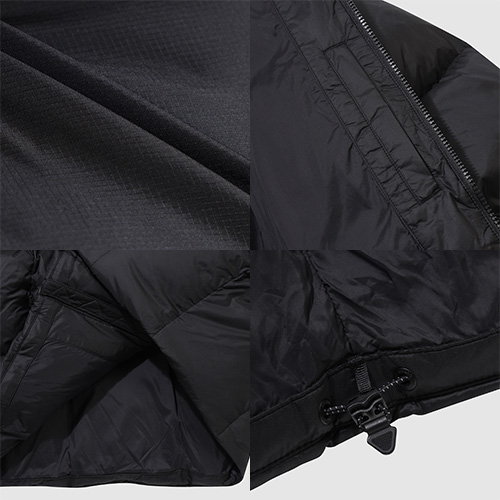 一般的なダック(アヒル)より、かさ高性があるモスクワ産ダックのダウンを使用しているため、ボリューム感と保温性に優れている。スタイリッシュなチェックパターンを採用し、裾のストリングを絞ってトレンド感のある丸いシルエットで演出可能。