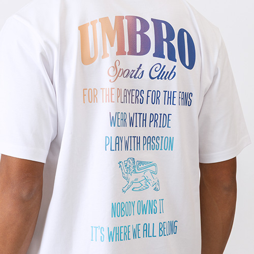 アンブロのアーカイブ要素をトレンディに再解釈したグラフィック半袖Tシャツ。肌触りの良いコットン素材を採用。