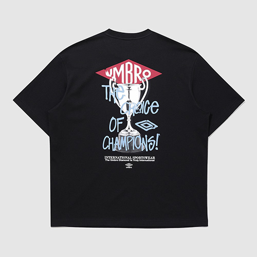 アンブロアーカイブの「トロフィー」からインスピレーションを得たグラフィック半袖Tシャツ。オーバーフィットシルエットと背面のアートワーク配置でストリートなムードを演出。肌面はメッシュ組織で、快適な着心地を実現。