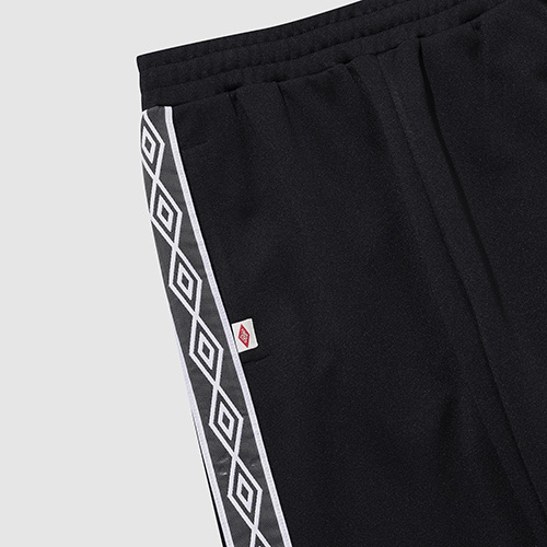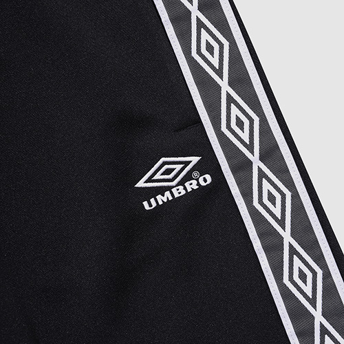 アンブロヘリテージテープを取り入れたトラックセットアップ。ハリコシのあるダンボール生地を採用し、シルエットにこだわったアイテム。(UU5SJG04MRとのコーディネートが可能)