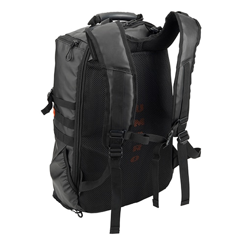 - はっ水加工の杢調素材を使用した高機能・多収納バックパック。正面は、止水ファスナーとアンブロロゴのリフレクターワッペンがポイント。本体内部背面にはPCポケット。両サイドは大き目のルームになっていて1Lサイズのボトルも収納でき、また保冷素材を使用したポケットも付いています。そしてペンホルダーなどの小物も収納可能な仕様になっています。上部には、サングラスや携帯などの貴重品入れにキスが付きにくいように起毛素材を使用。左右側面ポケットは下部に拡張するメッシュポケットがついているので大き目のボトルや折りたたみ傘を収納するのに便利。背面は通気性のあるメッシュで内部にアンブロロゴがデザインポイント。底部にはシューズルーム付き。大容量で週末の試合や遠征用にも使用可能。ショルダー部分は、身体にフィットしやすい仕様で実用新案取得。