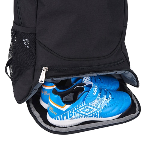 - 本体生地に、はっ水加工のリサイクル素材(レプリーブ)を採用した環境にやさしいジュニアエントリーモデル。また糸の強度・裏のコーティングアップし耐久性を高めています。収納にはアイコンプリントが施されており、お子さまが何をどこに収納するのかが分かりやすい仕様。底部分にはシューズが収納可能で、本体横メッシュポケットにはシンガード、ボール用ネットも搭載しているので、外付けが可能。また本体内側中央には水筒用ポケットを配置している為、自転車に乗った際にも重心が崩れにくいようになっている。その他小物ポケット、本体前側には汚れ物も仕分けが可能。再起反射材を前・ショルダーベルト・サイド部分に配置していることで自動車からの視認性もUP。背面内側に、ネームラベルを付けています。キッズデザイン受賞商品です。