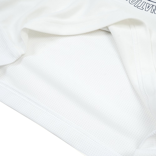 - 「真夏のトレーニングを快適に!」真夏のトレーニングをサポートするプラクティスアイテム。触るとヒンヤリ感じる接触冷感素材を採用。発汗量の多い背中の中心をメッシュ生地にすることで熱がこもりにくく快適な着心地を実現。