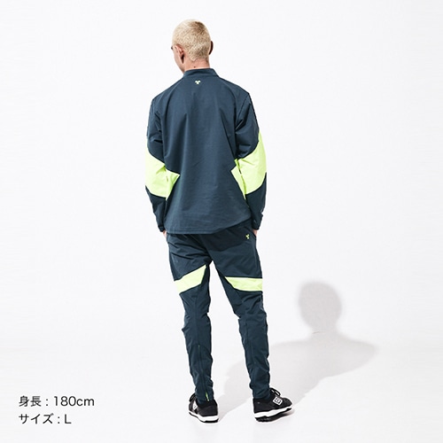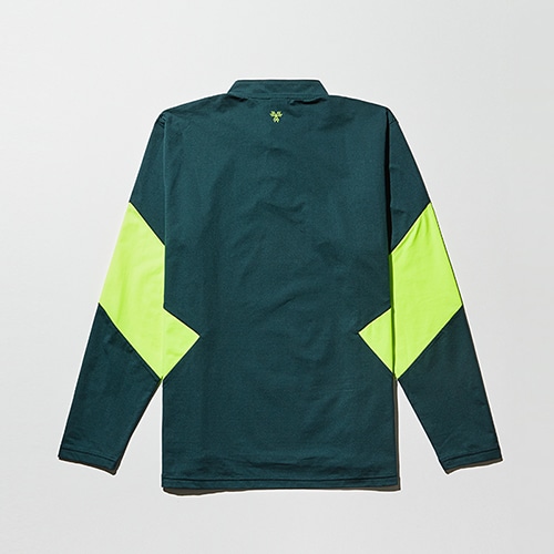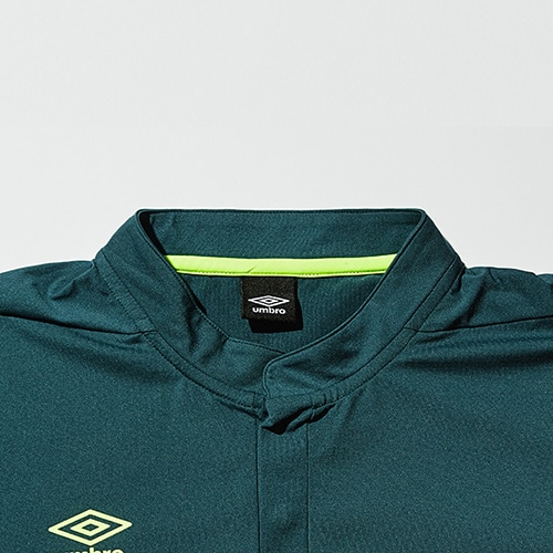 ハリコシが特徴の素材を採用した被りのジャージアイテム。着脱のしやすさを考慮し、襟元は立ち襟のボタン仕様に。フィールド上での着用はもちろんのこと、オフシーンでも着られるカーキやブラックカラーもバランスよく配色したアイテム。ジャージパンツ(UUUVJG13)とのセットアップでの着こなしがおススメ。
