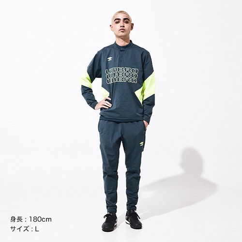アンブロ独自開発のパターン”ミニマフレックス”を搭載したジャージパンツ。細身のシルエットながらも生地のストレッチ性を最大限発揮することで快適な動きやすさを実現。ジャージのトップス(UUUVJF13)とセットアップでのコーディネートがおススメ。