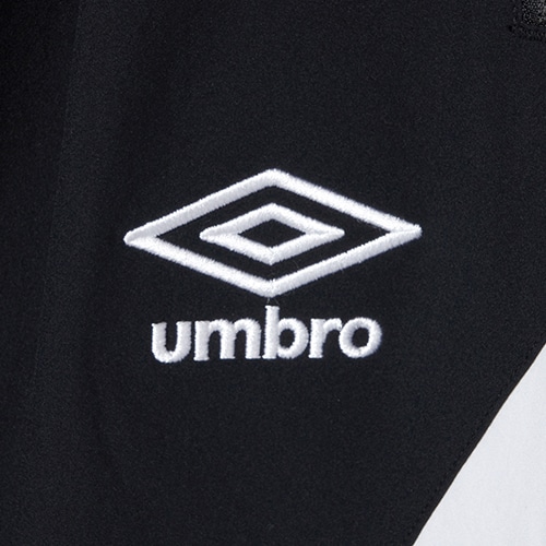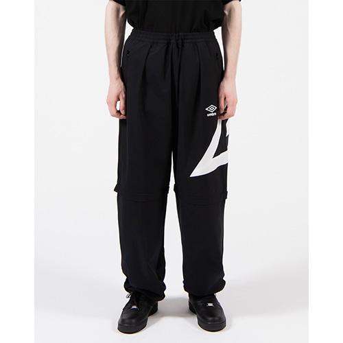90年代の『umbro』ロゴをベースに現代的に再構築したトラックパンツ。オーバーサイズのシルエットと両膝部分のファスナーで裾が取り外せるデタッチャブル仕様でショーツにもなるデザインが特徴。