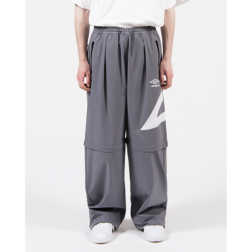 90年代の『umbro』ロゴをベースに現代的に再構築したトラックパンツ。オーバーサイズのシルエットと両膝部分のファスナーで裾が取り外せるデタッチャブル仕様でショーツにもなるデザインが特徴。