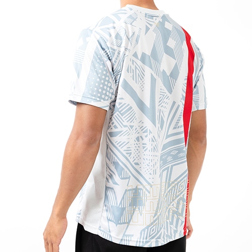 ブランド100周年を記念するグラフィックを大胆にあしらったグラフィックプラシャツ。脇部分にはメッシュ素材を採用。通気性を高め、快適な着心地を実現。