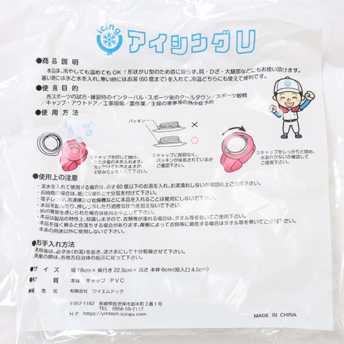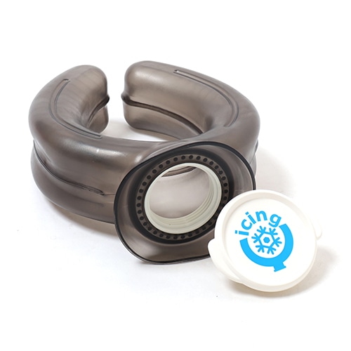 - 新触感のネッククーラー、ハンズフリーの氷嚢(ひょうのう)「アイシングU」。