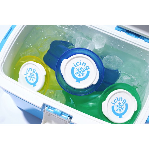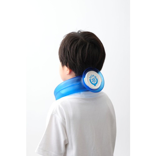 - 新触感のネッククーラー、ハンズフリーの氷嚢(ひょうのう)「アイシングU」。