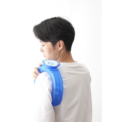 氷と水を入れて、首にかけるだけ。太い血管が通る首元を冷やすことで、暑さ対策効果が期待でき、柔軟性が高いため、肩や大腿などにも使用可能となっております。また、冬場にはお湯(60℃まで)を入れると、ネックウォーマーとしても使えます。