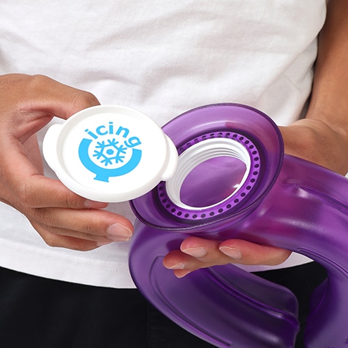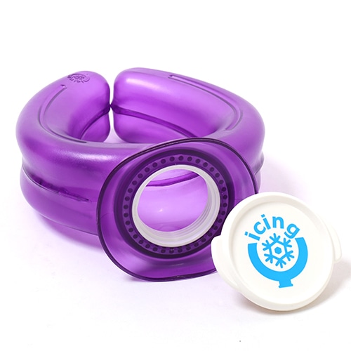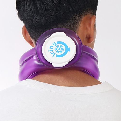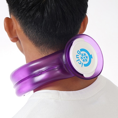 - 新触感のネッククーラー、ハンズフリーの氷嚢(ひょうのう)「アイシングU」。