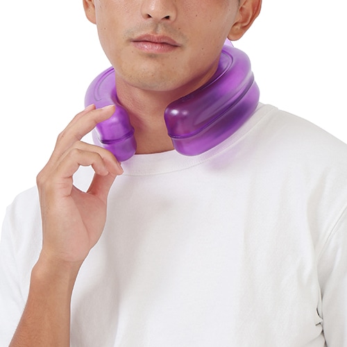 氷と水を入れて、首にかけるだけ。太い血管が通る首元を冷やすことで、暑さ対策効果が期待でき、柔軟性が高いため、肩や大腿などにも使用可能となっております。また、冬場にはお湯(60℃まで)を入れると、ネックウォーマーとしても使えます。