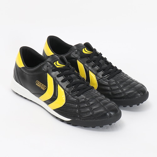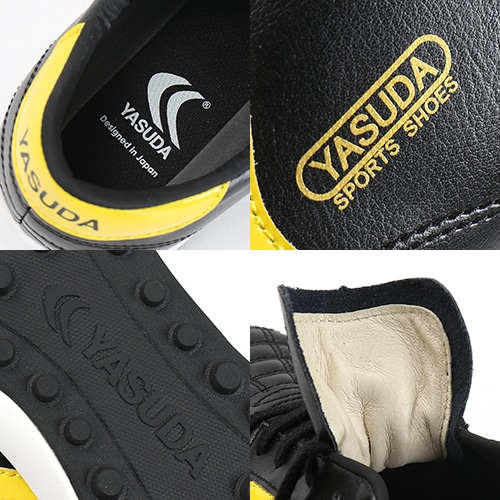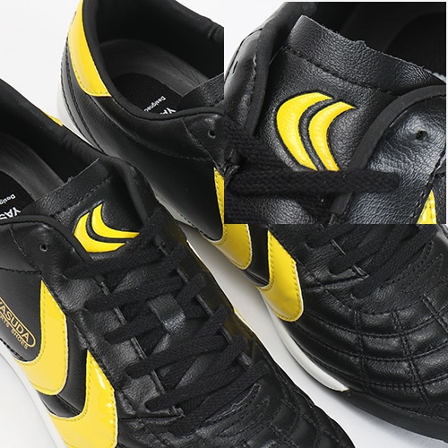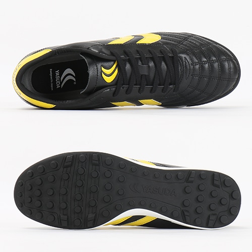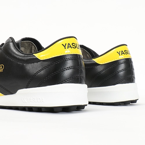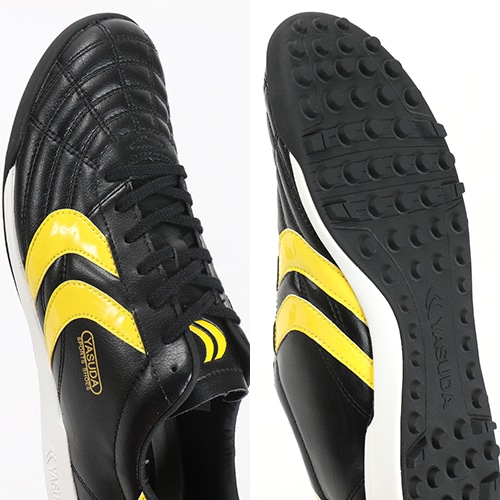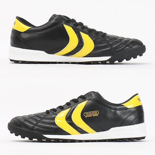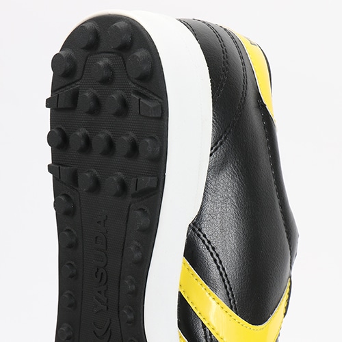 フットサルシューズとして能力を発揮するシューズです。スパイクよりも余裕のある木型(ラスト)を設計し、YASUDA伝統のデザインを踏襲した、YASUDAらしいシューズです。素材は牛革と人工皮革のコンビネーション。マルチスタッドラバーソールは、土のグラウンドはもちろん、人工芝やフットサルコートだけでなく、屋外での運動にも最適です。