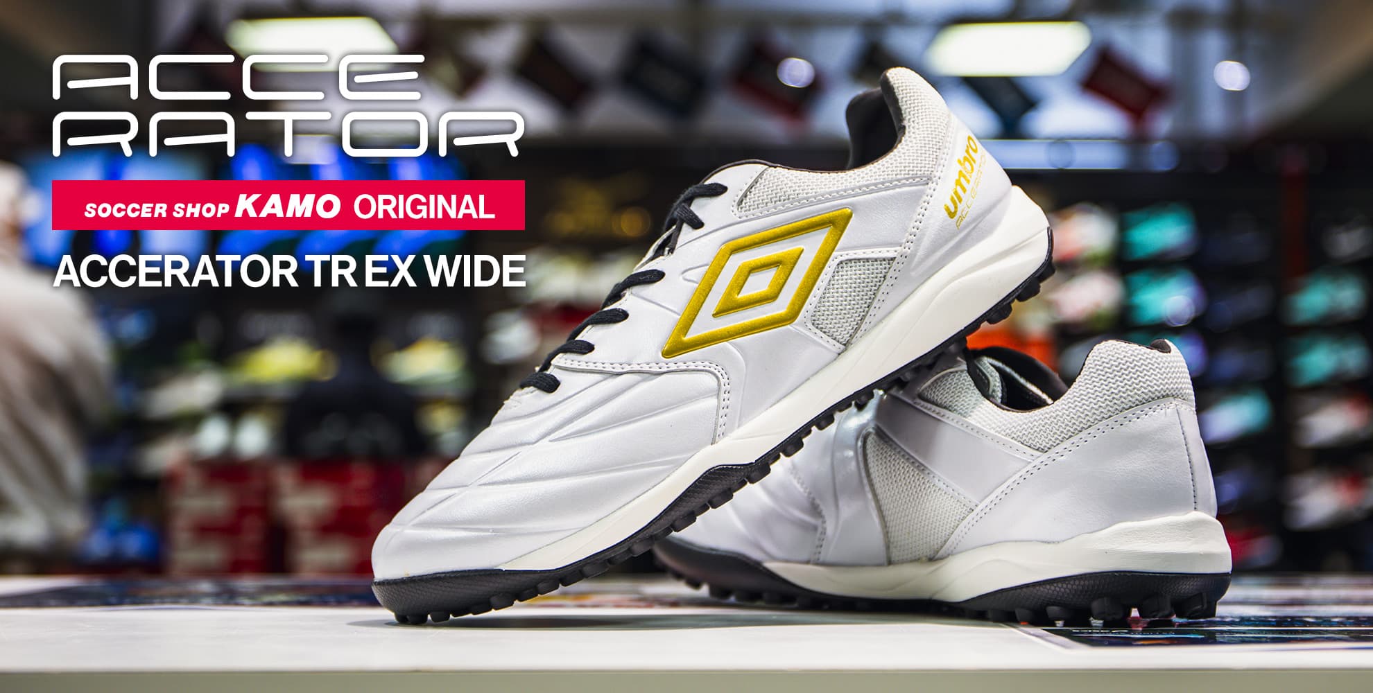 サッカーショップKAMO限定 日本国内企画の前足部を更に広げたEXワイドラストのトレーニングシューズに umbro × サッカーショップKAMOの限定モデルが登場。