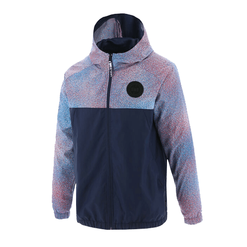 夜空を彷彿させるドットグラフィックが特徴のフード付き裏メッシュピステジャケット。防風・はっ水性に優れた素材を採用。