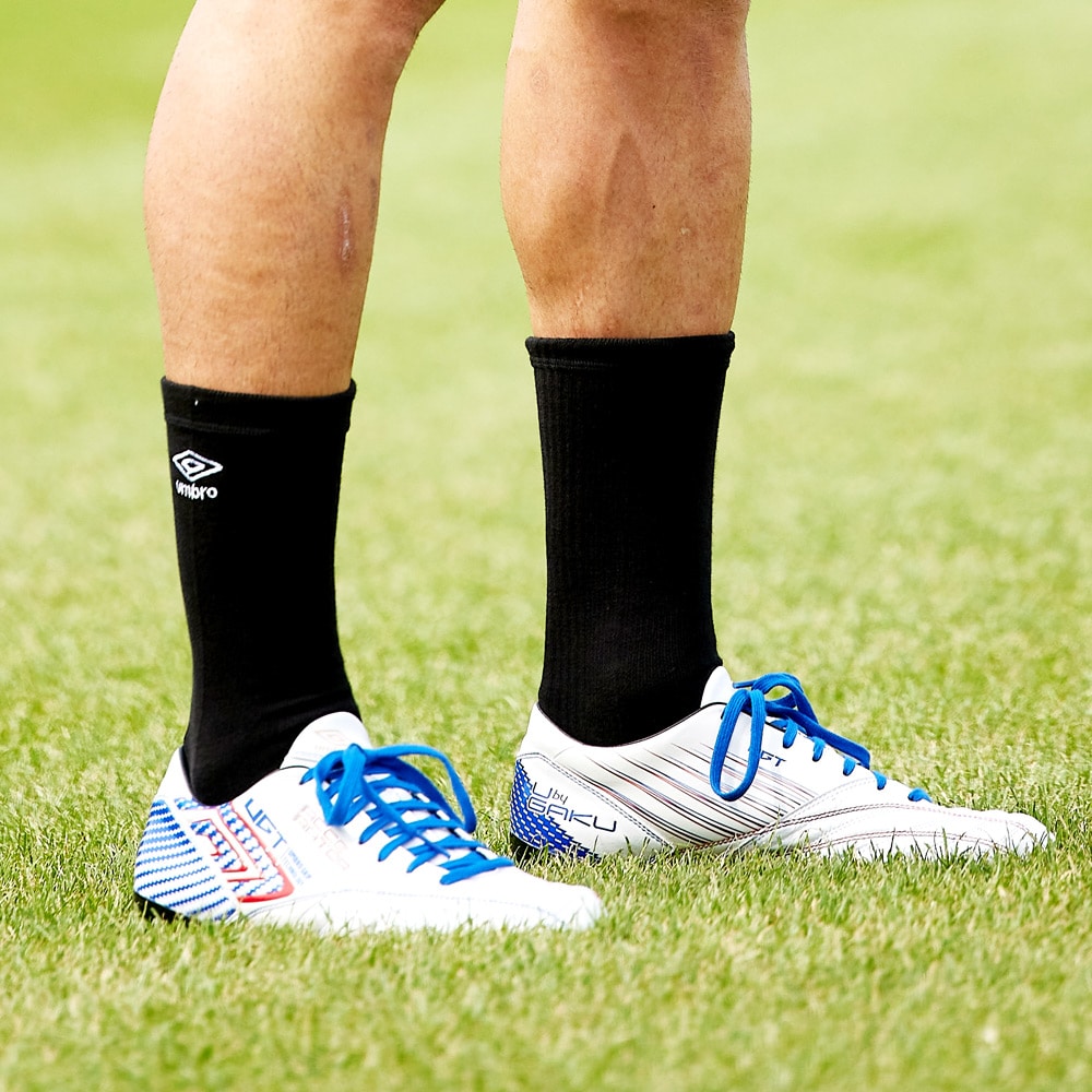 前足部アッパーには足なじみの良いカンガルーレザーを採用し、中足部アッパーには独自の柔軟性とボールグリップ性を合わせ持つ「UGT skin」を採用。 快適でソフトな足入れ感と、横ブレを抑えるアウトサイドの縦断ステッチが特徴です。 足底の衝撃緩衝の為に、新たにインターナルミッドソールを中底に採用しました。
