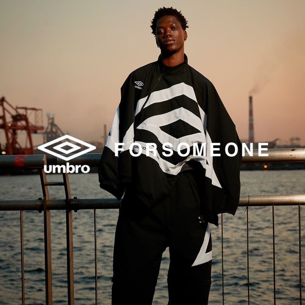 アパレルブランド『FORSOMEONE』とフットボールブランド『umbro』が初のコラボレーション。 英国ロックシーンからインスパイアされたカプセルコレクションが登場。 90年代の『umbro』ロゴをベースに現代的に再構築したアイテムをラインナップ。