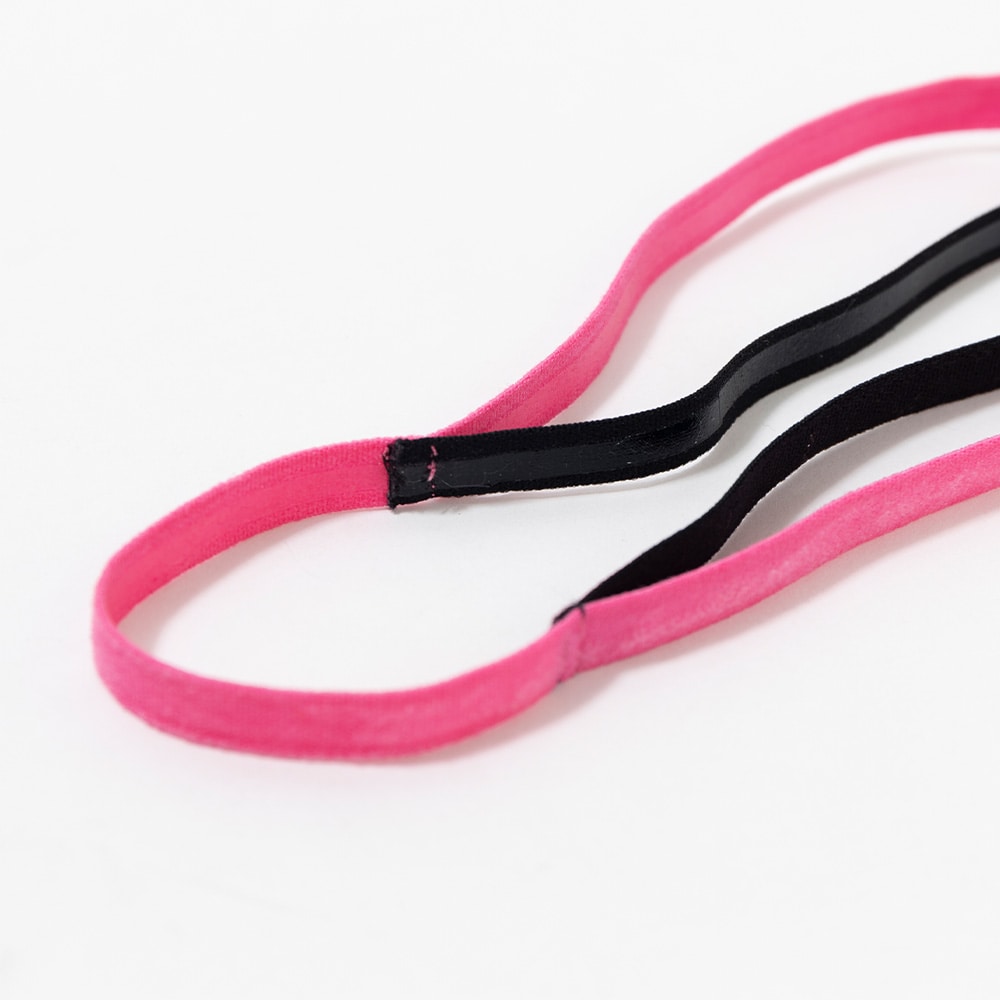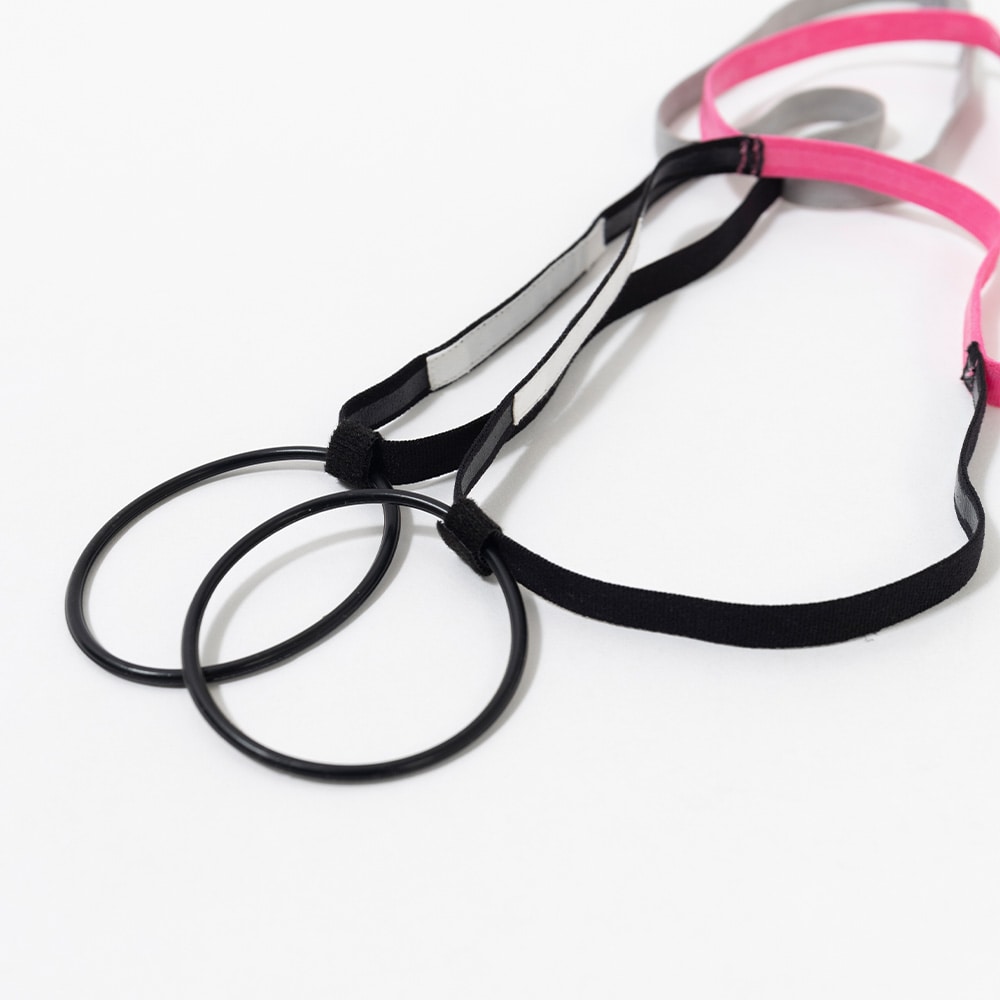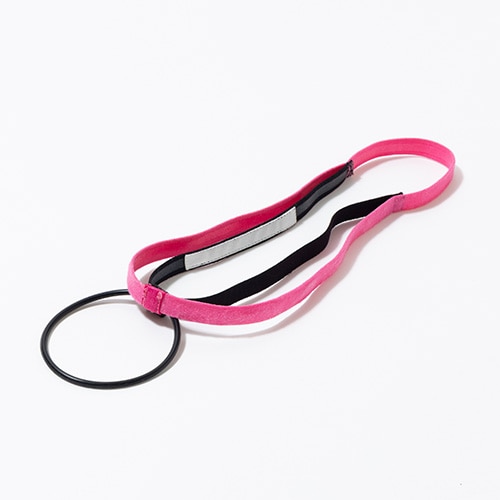 2本のヘアバンドとヘアゴムの一体型構造によって固定力がUP!「ヘアバンドのずれ」や「ヘアゴムがほどけ」を解消します。